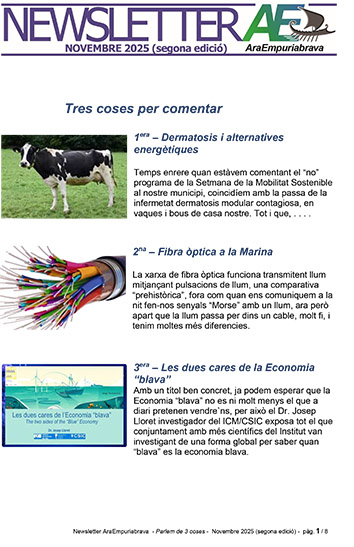 Llegir més ...I per això, AraEmpuriabrava, com a associació, treballa pel bé de l’interès general d’Empuriabrava i és oberta a tothom que vulgui compartir aquests propòsits. Treballem en l’anàlisi dels reptes a què s’enfronta pensant en el proper futur i intentant anticipar-se a les necessitats i les seves solucions potencials.